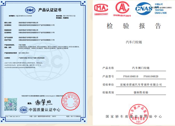 宣城市君誠汽車零部件有限公司是專業生產各類汽車鉸鏈及限位器的民營企業,總投資3000余萬元,位于宣城高新技術產業開發區,緊鄰宣廣、宣蕪高速公路,地理位置優越,交通便捷。是“國家高新技術企業、知識產權貫標企業、安徽省商標示范企業、安徽省科技型企業”,已獲得國家發明專利18項,實用新型發明專利4項。主要從事各類汽車門鉸鏈及限位器的設計、研發、生產、和銷售,具有專業的合作團隊。自2015年正式生產至今,已形成一整套完整的生產、質量管理體系。并已通過國家強制性產品認證“3C”體系認證及IATF16949國際質量體系認證。 在生產設備上,公司擁... 【查看詳細】